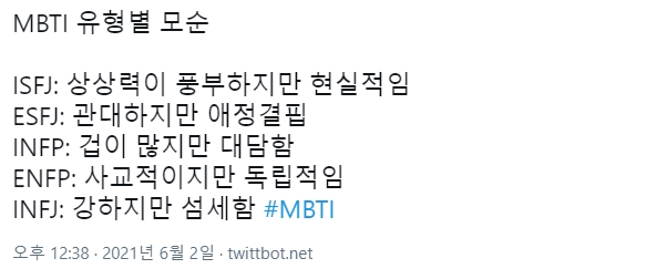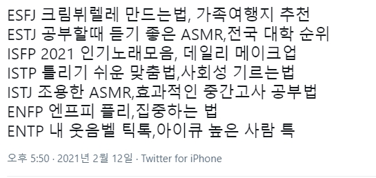 | mbti 짤 모음2 (택배 이상형 연애 궁합 소득 공주 조선시대) (1) | 2021.06.03 |