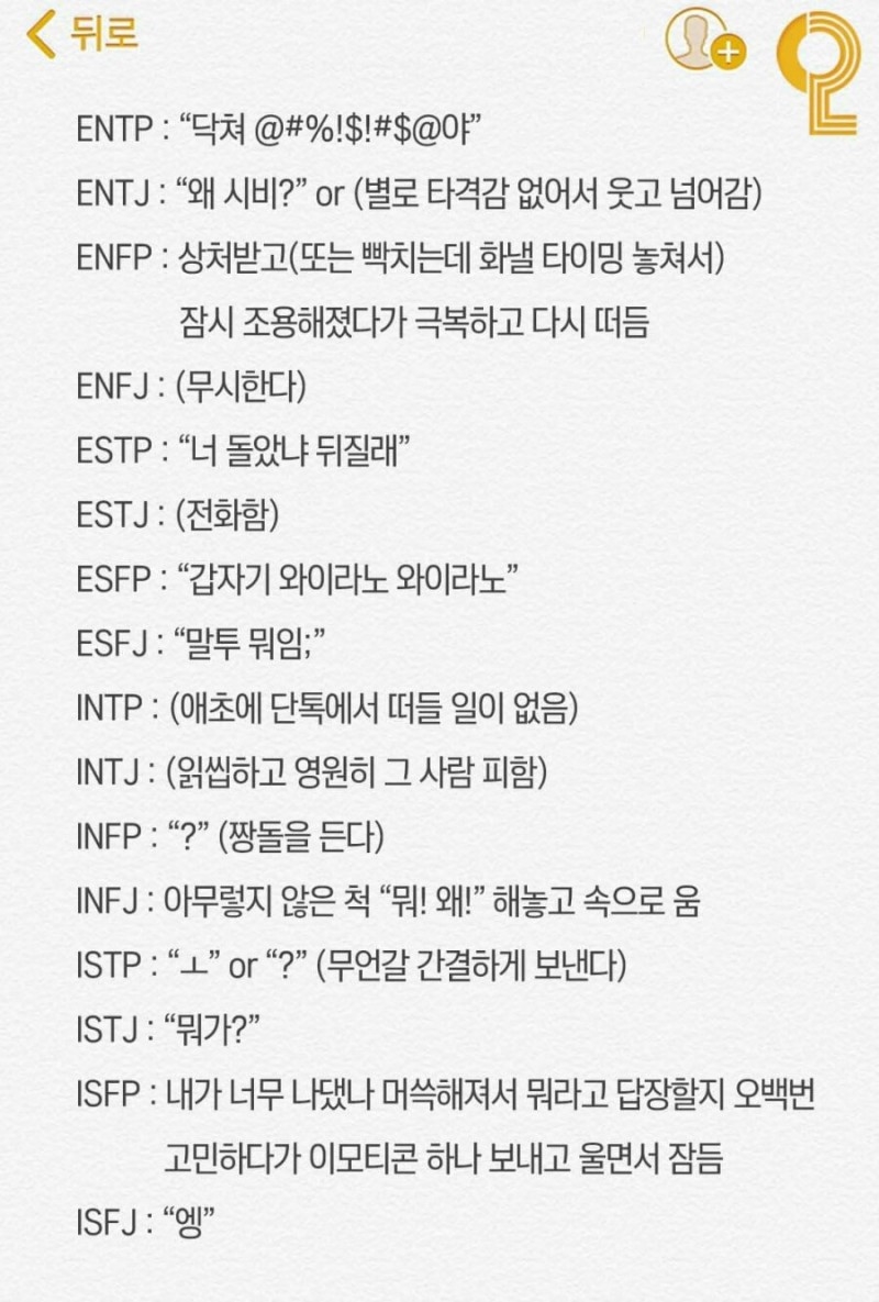 <mbti별 팩폭/ 한마디로 욕하자면 >
