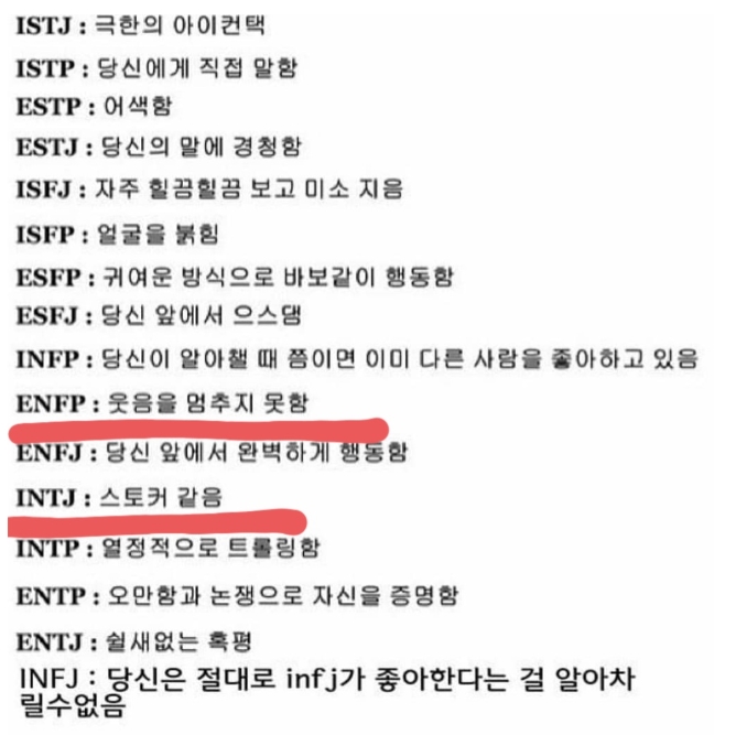 <mbti 유형별 좋아하는 사람, 끌리는 사람>