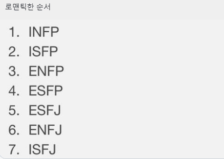 <mbti별 로맨틱한 순서>