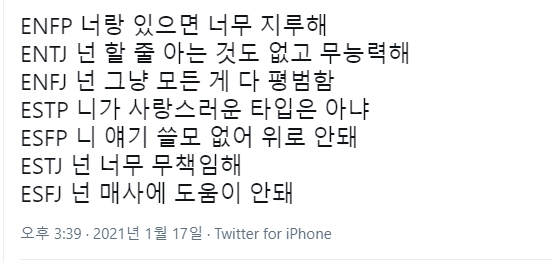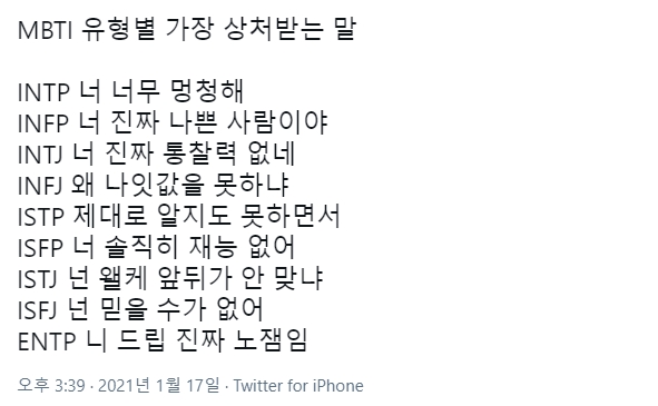 <mbti유형별 가장 상처받는 말>