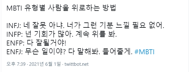 <mbti 유형별 사람을 위로하는 방법>