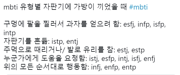 <mbti유형별 자판기에 가방이 끼었을 때>