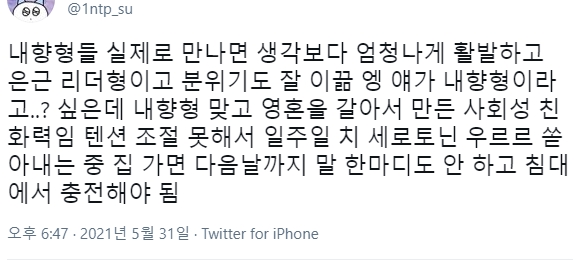 얘가내항혐이라고..? 싶은데 내향형 맞고 영혼을 갈아서 만든 사회성 친화력임